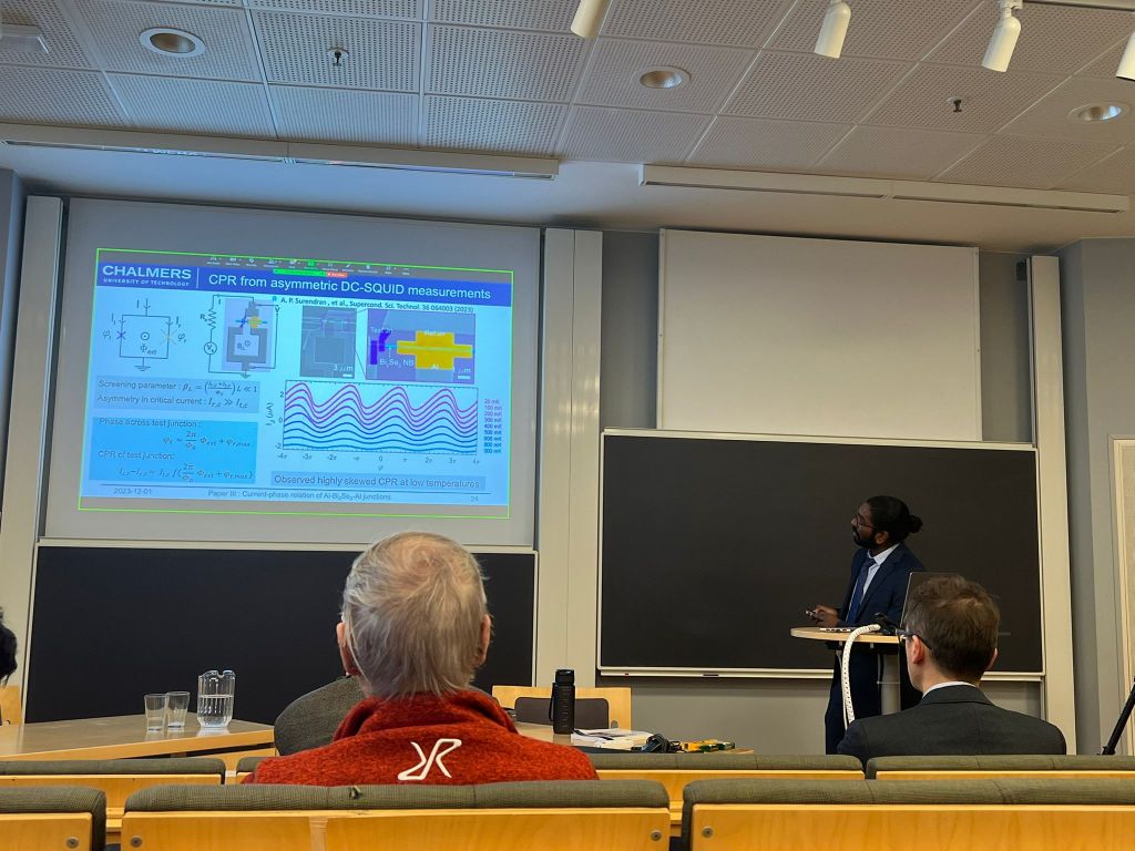 Congratulations to Ananthu Surendran who is now Doctor, after successfully defending his PhD thesis, about “Transport properties of Bi2Se3 Topological Insulator Nanoribbon-Superconductor hybrid junctions” on December 1st!