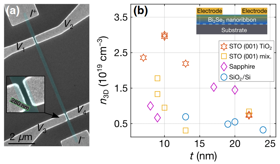 Read our work on topological insulator Bi2Se3 nanoribbons, done in collaboration with Matteo Salvato from Università di Roma “Tor Vergata” and with the group of Donats Erts at University of Latvia. The paper has been recently published on Physical Review Applied (link).